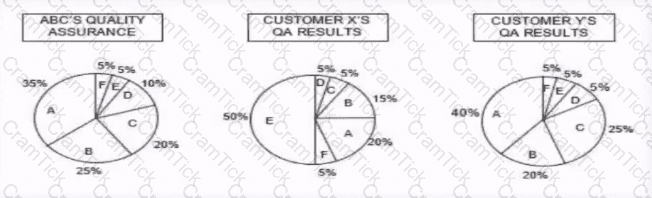 The following charts represent the defects reported by the ABC Manufacturing: Company. Customer X and Customer Y both received the same amounts of components from ABC.
