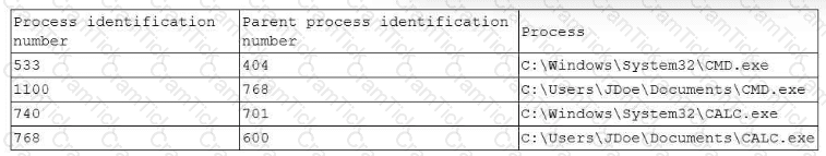 An analyst is reviewing processes running on a Windows host. The analyst reviews the following information: