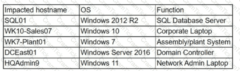 The security team at a company, which was a recent target of ransomware, compiled a list of hosts that were identified as impacted and in scope for this incident. Based on the following host list: