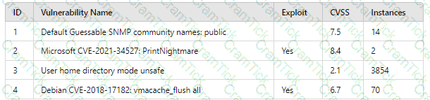 A vulnerability scan shows the following vulnerabilities in the environment: