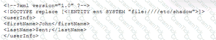 The SOC receives a number of complaints regarding a recent uptick in desktop error messages that are associated with workstation access to an internal web application. An analyst, identifying a recently modified XML file on the web server, retrieves a copy of this file for review, which contains the following code: