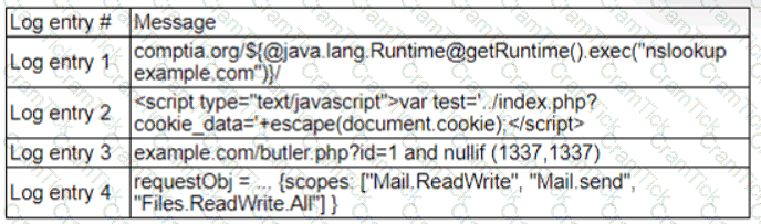 A zero-day command injection vulnerability was published. A security administrator is analyzing the following logs for evidence of adversaries attempting to exploit the vulnerability: