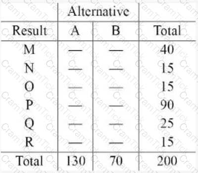 A test for independence of the variables shown in the table below (alternative vs. result) produced a test statistic with a value of χ² = 17.0.