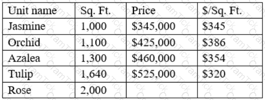 Using the average cost per square foot of the original floor plans, which of the following should be the price of the Rose unit?