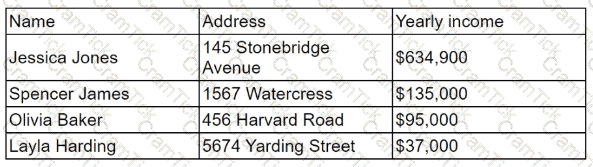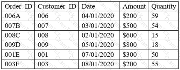 A data analyst has a set with more than 40.000 rows in the sample schema below: