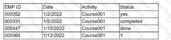 During data profiling, an analyst decides to recode the status column in the following data set: