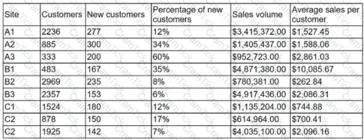 An analyst is designing a dashboard that will provide a story of the sales and sales customer ratio. The following data is available:
