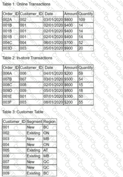 A data analyst needs to create a master file that includes customer information from the tables below: