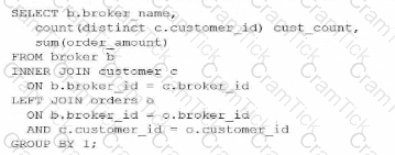 A Data Analyst runs this query: