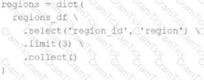 A developer needs to produce a Python dictionary using data stored in a small Parquet table, which looks like this: