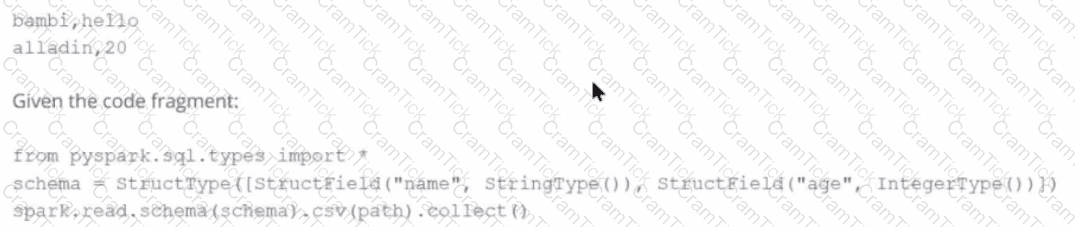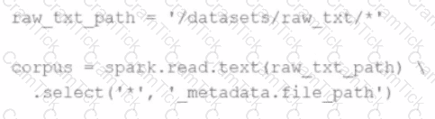 1 of 55. A data scientist wants to ingest a directory full of plain text files so that each record in the output DataFrame contains the entire contents of a single file and the full path of the file the text was read from.