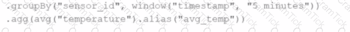 A data engineer wants to process a streaming DataFrame that receives sensor readings every second with columns sensor_id, temperature, and timestamp. The engineer needs to calculate the average temperature for each sensor over the last 5 minutes while the data is streaming.