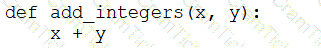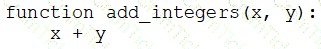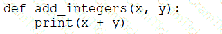 A data engineer that is new to using Python needs to create a Python function to add two integers together and return the sum?