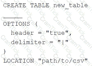 A data engineer needs to create a table in Databricks using data from a CSV file at location /path/to/csv.