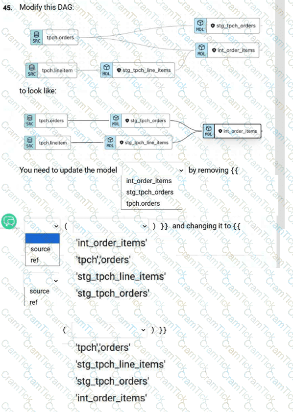 Which two code snippets result in a lineage line being shown in the DAG? Choose 2 options.