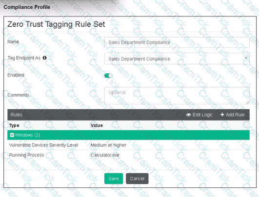 A FortiClient EMS administrator has enabled the compliance rule for the sales department Which Fortinet device will enforce compliance with dynamic access control?
