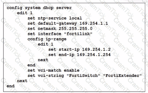 You've configured the FortiLink interface, and the DHCP server is enabled by default. The resulting DHCP server settings are shown in the exhibit. What is the role of the vci-string setting in this configuration?