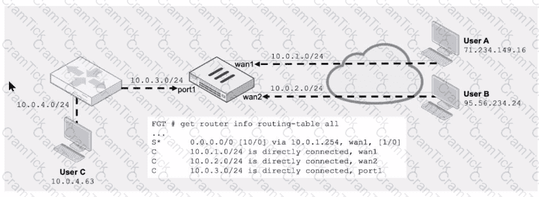FortiGate has already been configured with a firewall policy that allows all ICMP traffic to flow from port1 to port3.