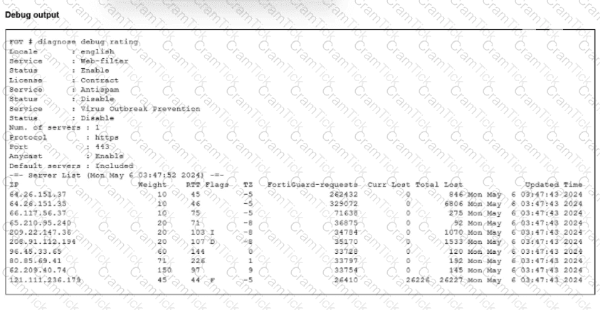 Refer to the exhibit, which shows the partial output of command diagnose debug rating.