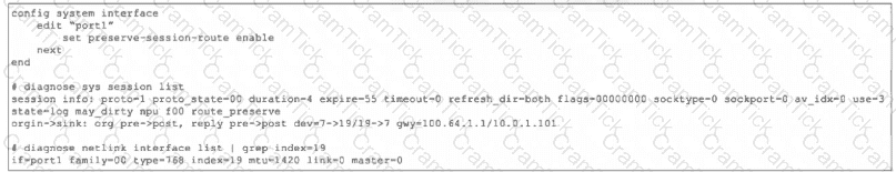 Refer to the exhibit, which shows the port1 interface configuration on FortiGate and partial session information for ICMP traffic.