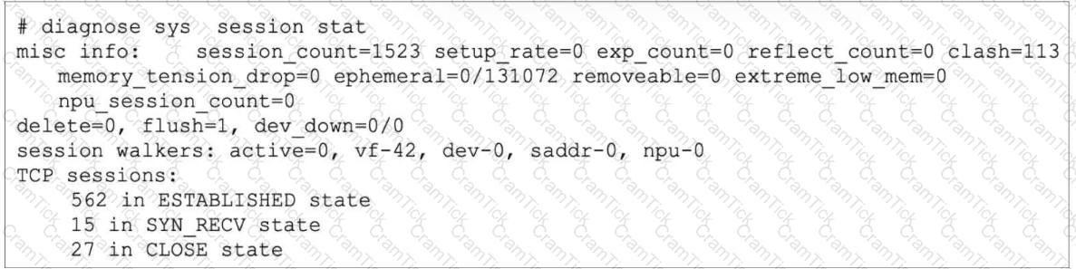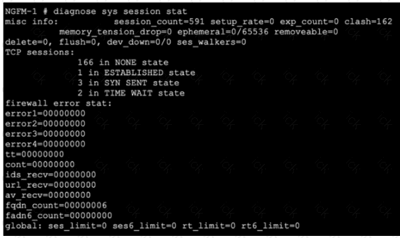 Refer to the exhibit, which shows the output of diagnose sys session stat.