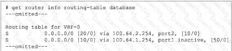The administrator wants to configure a default static route for port3 and assign a distance of 50 and a priority of 0.