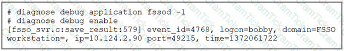 Refer to the exhibit, which shows a partial output of the fssod daemon real-time debug command.
