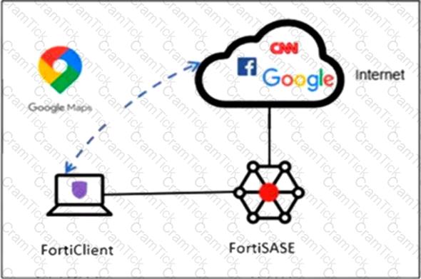 An organization must inspect all the endpoint internet traffic on FortiSASE, and exclude Google Maps traffic from the FortiSASE VPN tunnel and redirect it to the endpoint physical interface.