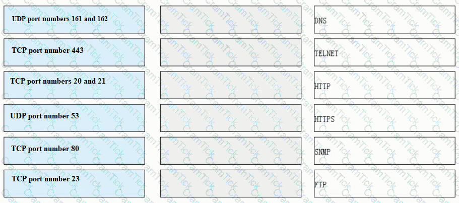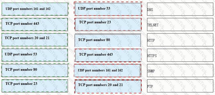 Match each of the following application layer service protocols with the correct transport layer protocols and port numbers.