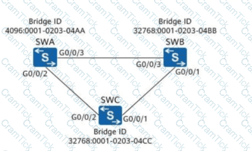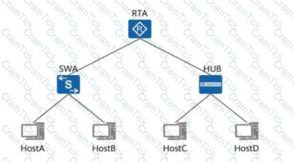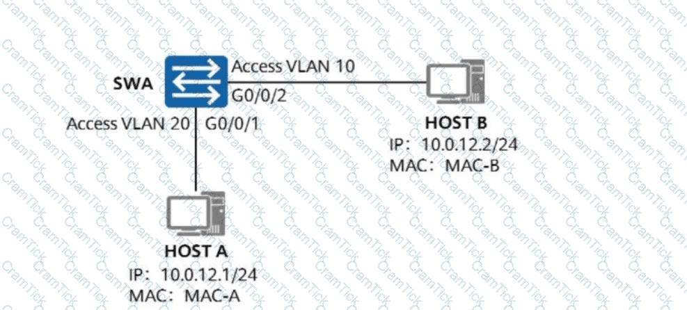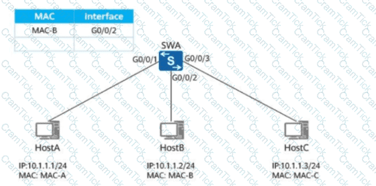 As shown in the figure, assume that the MAC address table of SWA is as follows. Host A sends a data frame whose destination MAC address is MAC-B to SWA. Which of the following statements is true?