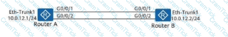 On the network shown in the figure, router A adopts link aggregation in manual load balancing mode, and G0/0/1 and G0/0/2 are added to link aggregation group (LAG) 1. Which of the following statements is false about Eth-Trunk 1 on router A?