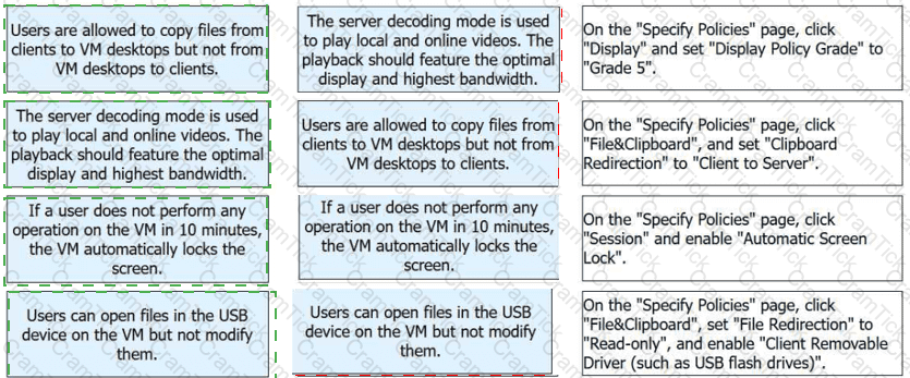 FusionAccess application policies allow users to use VM desktops. Match the following application scenarios with their operations
