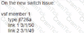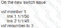Your customer has an Aruba CX 6200F VSF stack with two switches. A third member (JL726A) needs to be added to the VSF configuration. What e the configuration that enables the new devices to join the VSF?