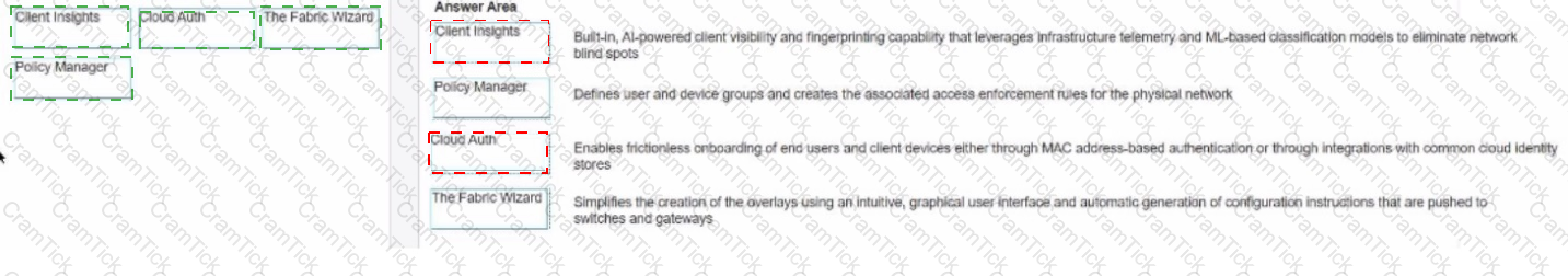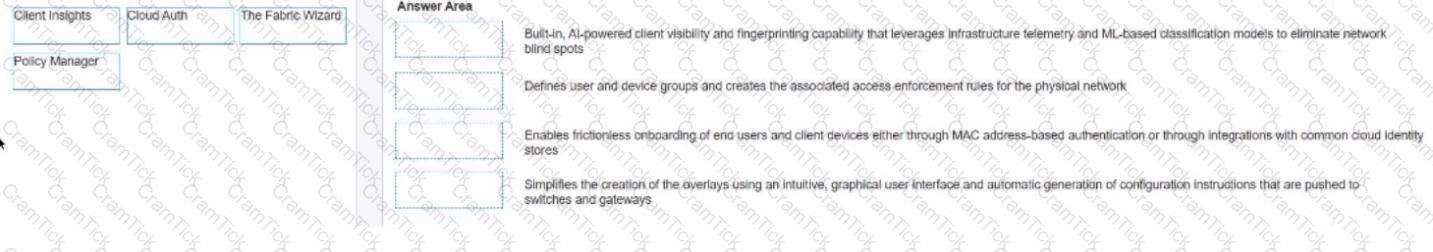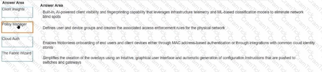 Match the solution component of HPE Aruba network Central NetConductor. (Options may be used more than once or not at all.)