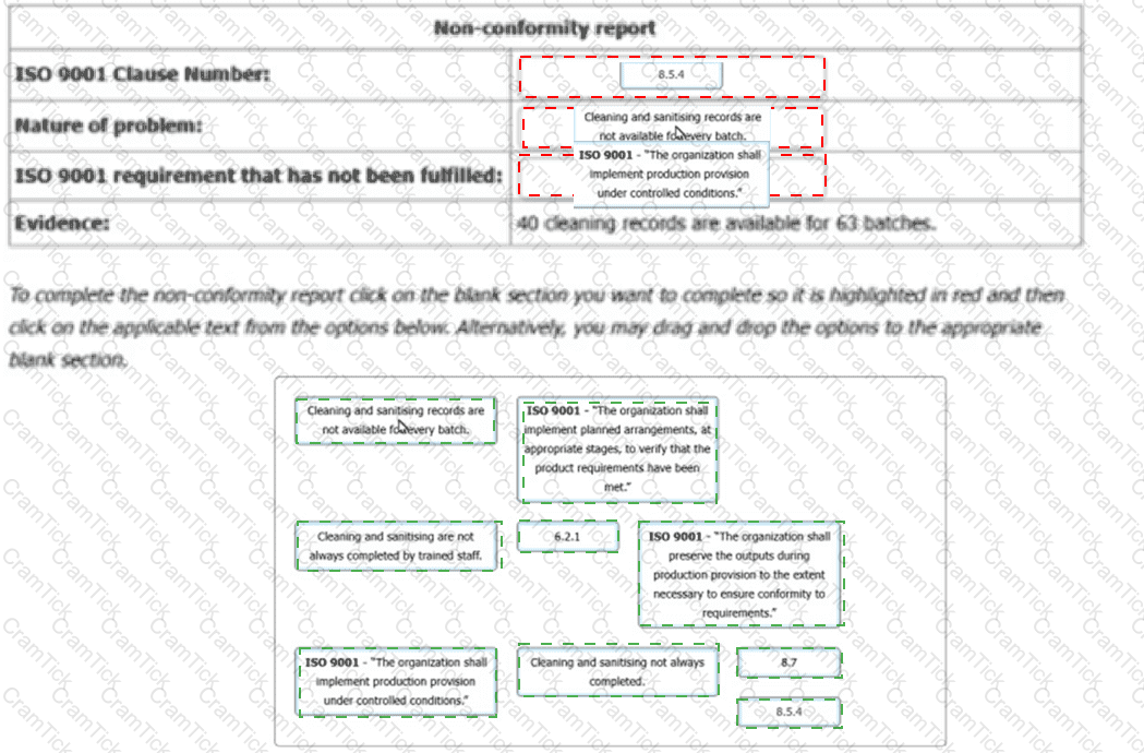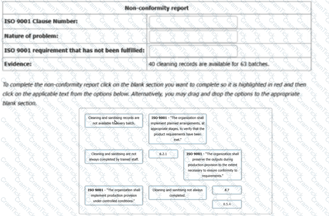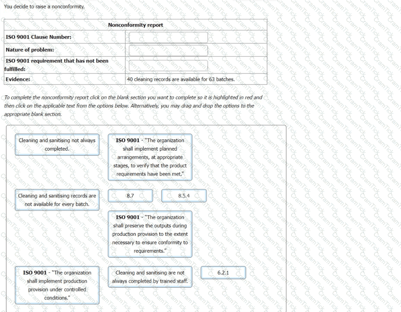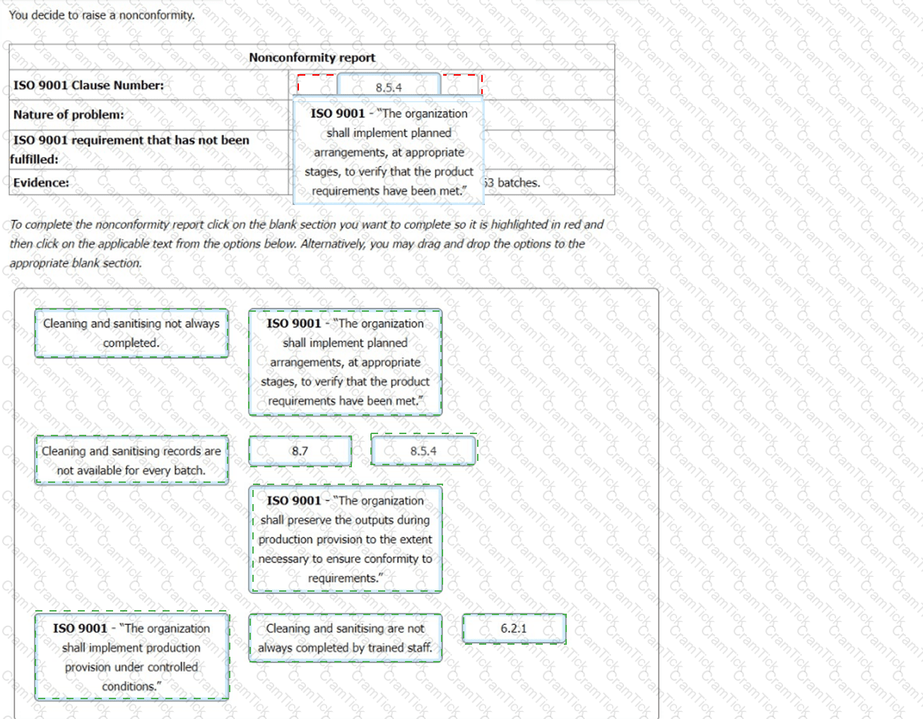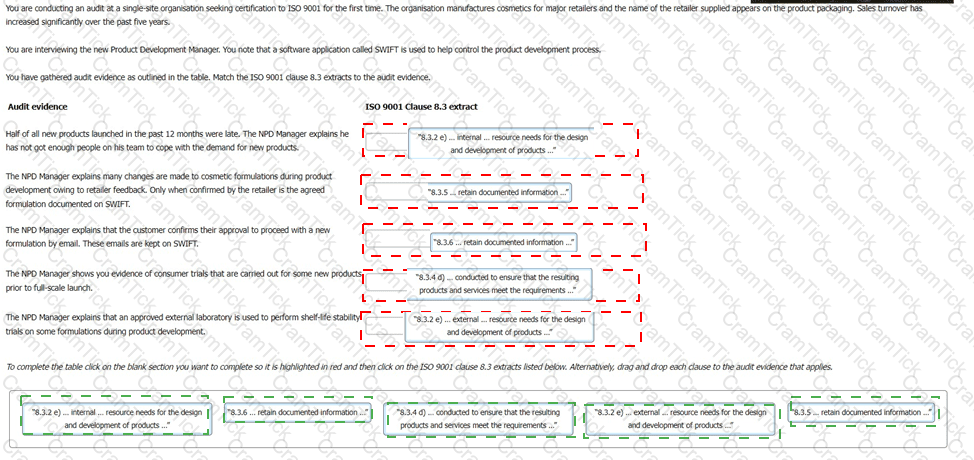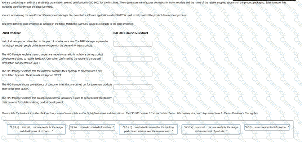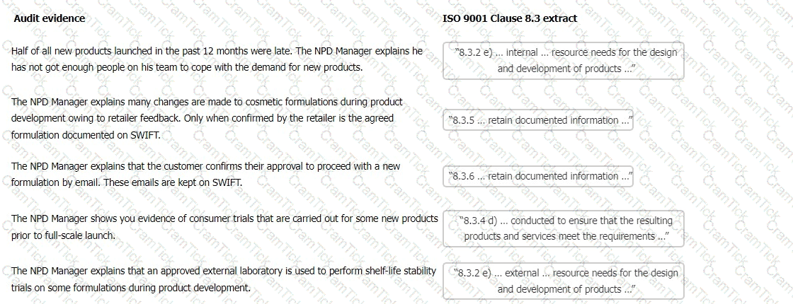 You have gathered audit evidence as outlined in the table. Match the ISO 9001 clause 8.3 extracts to the audit evidence.