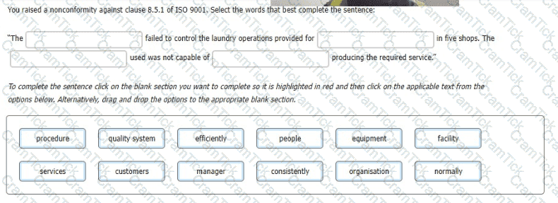 You decide to raise another non-conformity against section 8.2.4 of ISO 9001 when finding that the