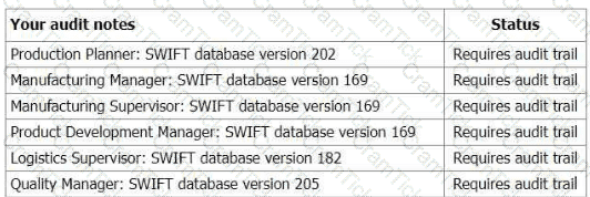 You ask the Quality Manager to explain how the SWIFT database is controlled. You learn that the Operations Director is