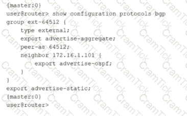 Referring to the exhibit, which export policy applies to the BGP neighbor 172.16.1.101?