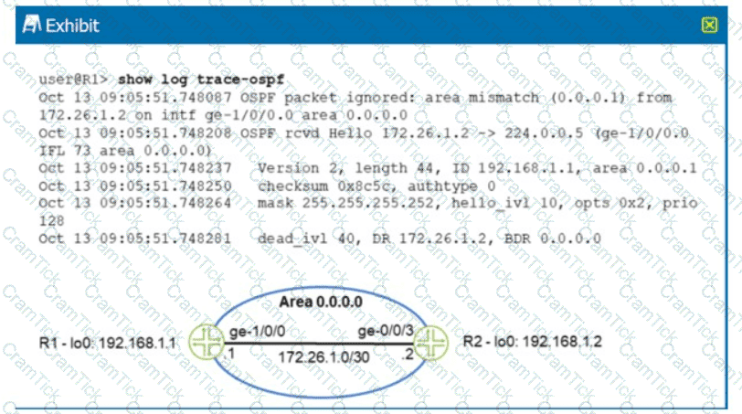 You have two OSPF routers that will not form an adjacency. You enter the show log trace-ospf command.