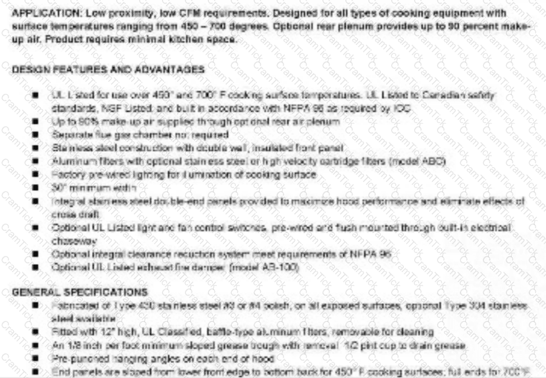 Where the cooking surface has exposed flame and burners, the minimum distance between the lowest edge of a grease filter and the cooking or heating surface shall be _____ inches.