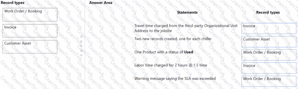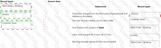 When performing a quality check, what will the back office employee expect to see as a result of this service call? To answer, drag the appropriate record type to the correct statement. Each record type may be used once, more than once, or not at all. You may need to drag the split bar between panes or scroll to view content.