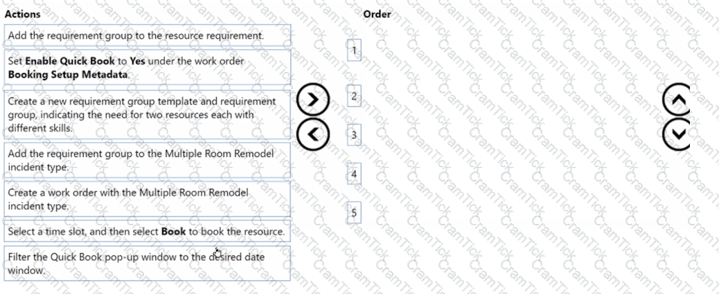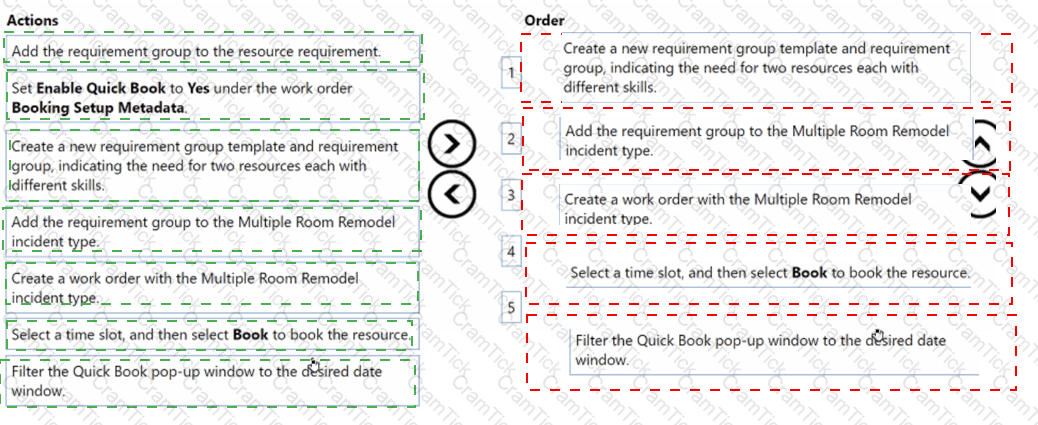 Currently, Litware, Inc. does not any technicians with both kitchen remodeling and bath remodel skills. Litware, Inc. wants to use the new Quick Book functionality to schedule multiple resources to this work order.