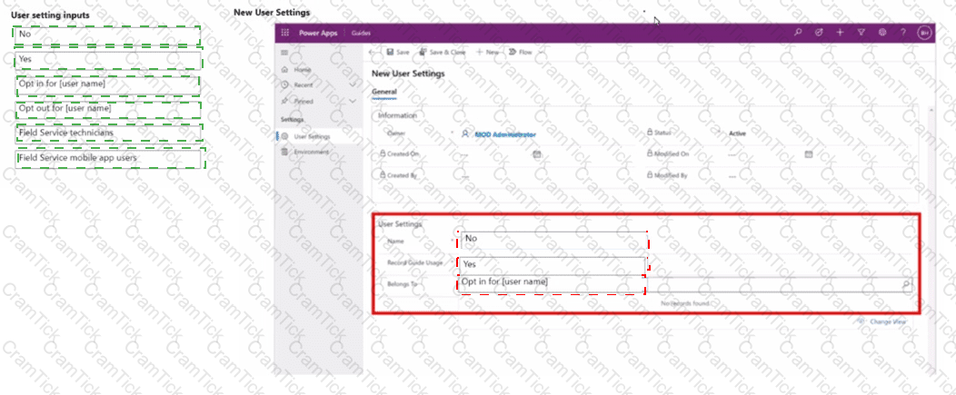 How should you configure the user settings? To answer, move the appropriate configurations to the correct location. You may use each configuration once or not at all. You may need to drag the split bar between panes or scroll to view content.
