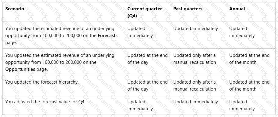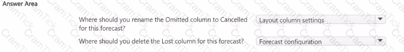 You are a Dynamics 365 Sales administrator. You create a forecast by using the forecast category layout shown in the exhibit: