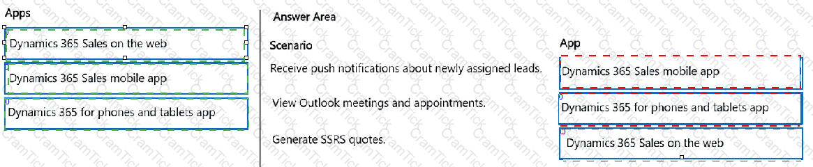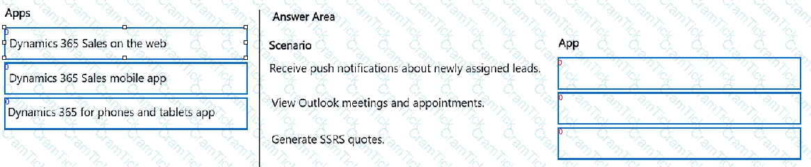 A company has implemented Dynamics 365 Sales Enterprise. The salespeople often travel to meet customers and require mobile-friendly solutions to various scenarios.