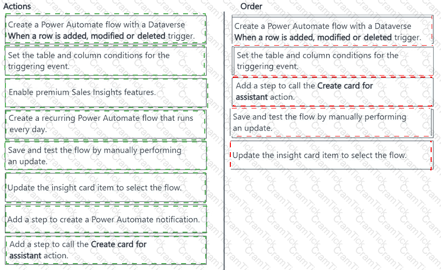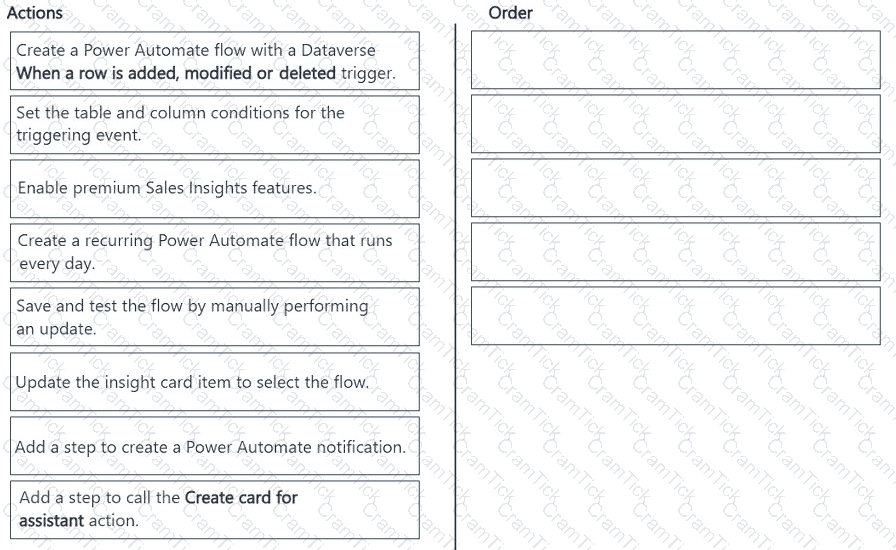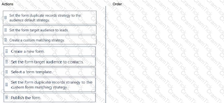 In which order should you perform the actions? To answer, move all actions from the list of actions to the answer area and arrange them in the correct order.