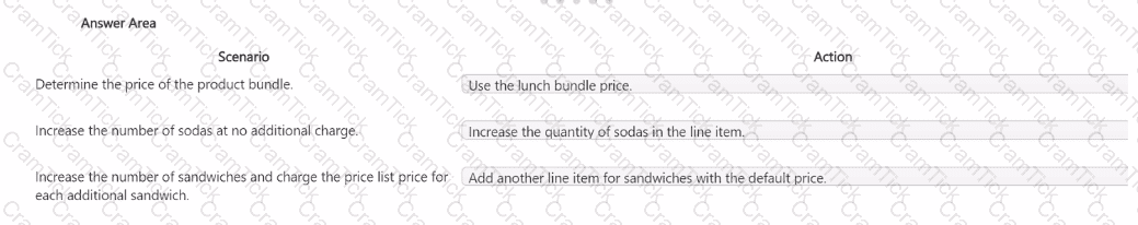 You need to explain how the sales staff should manage the product bundle in the opportunity. What should they do for each scenario? To answer, select the appropriate options in the answer area. NOTE: Each correct selection is worth one point.