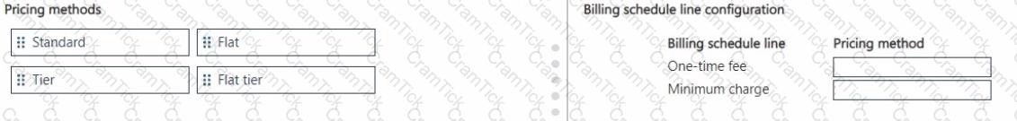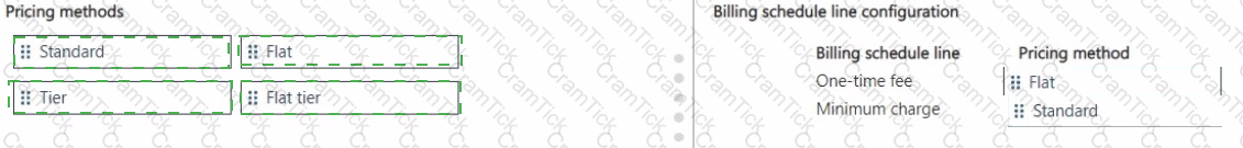 How should you complete the setup? To answer, move the appropriate pricing methods to the correct billing schedule lines. You may use each pricing method once, more than once, or not at all. You may need to move the split bar between panes or scroll to view content.