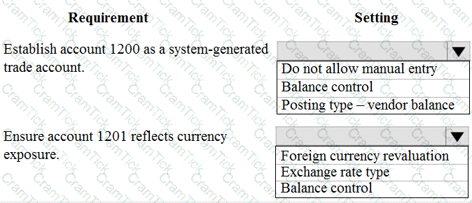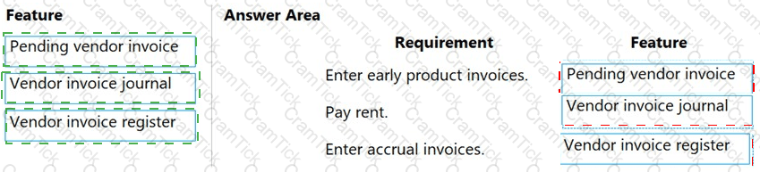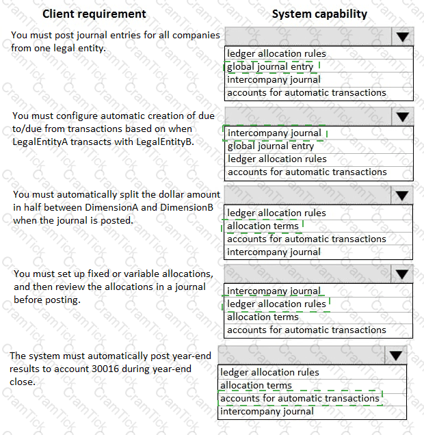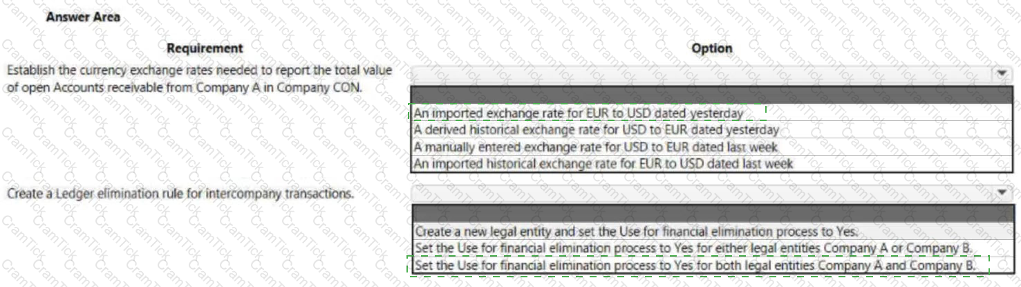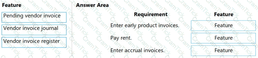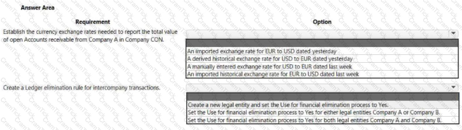 You need to configure Dynamics 365 for Finance and Operations to meet the following requirements:
