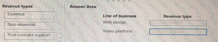 Which revenue type is associated with the line of business? To answer, drag the appropriate revenue types to the correct lines of business. Each revenue type may be used once, more than once, or not at all. You may need to drag the split bar between panes or scroll to view content.